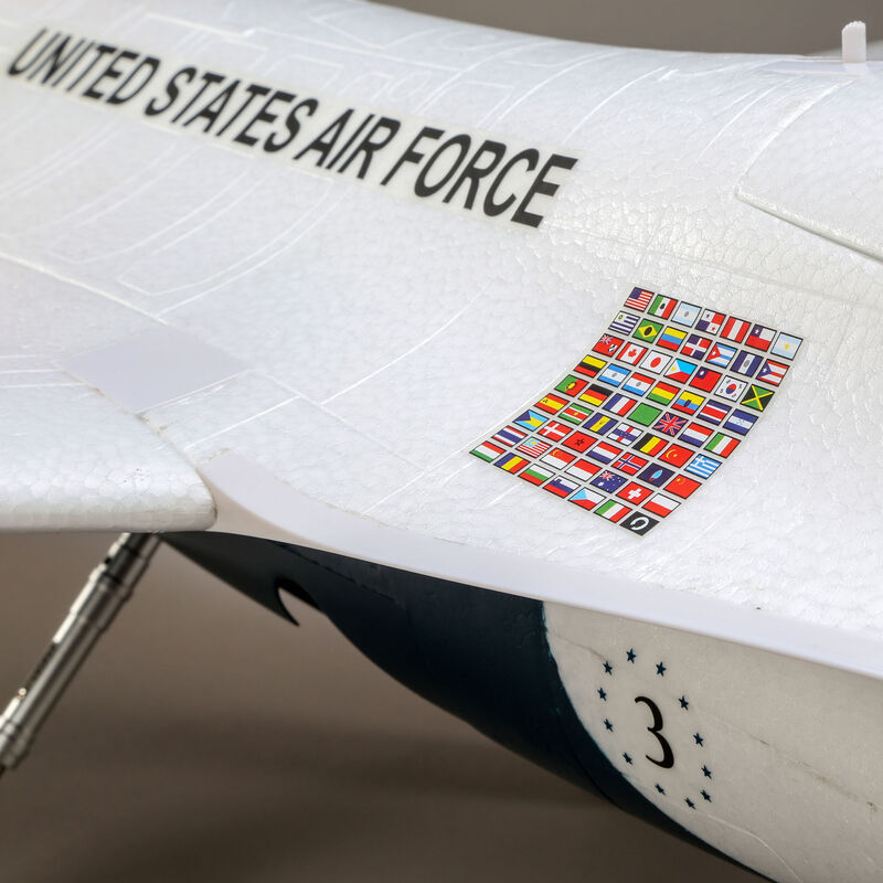 The E-flite® F-16 Thunderbirds 70mm EDF jet is a scale replica of the iconic aircraft flown by the U.S. Air Force Thunderbirds demonstration team. Like the full-scale airshow thriller, this F-16 has an incredibly wide performance envelope—from slow and stable high-alpha flight to amazing high-speed and vertical capabilities. At its core is a 6S-compatible brushless motor and a 70-amp ESC that are matched to a 12-blade fan to deliver an abundance of speed, thrust and a turbine-like sound. Factory-installed electric retracts with shock-absorbing struts make it possible to take off and land on a wider variety of surfaces–including grass—while keeping ground handling smooth and delivering a realistic jet experience. The composite reinforced EPO airframe is lightweight yet strong, and the digital, metal geared servos plus ball-link equipped pushrods provide precise control. And it all combines to deliver one of the easiest to fly, yet highest-performance and most capable, F-16 models ever!