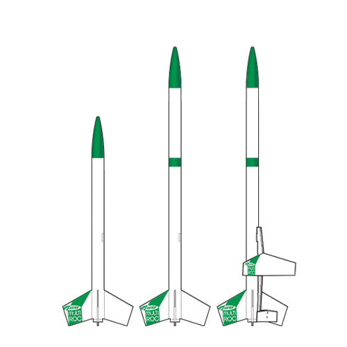 Hmmm, do you want to fly a single-stage, payloader, dual-stage, maybe even release a glider at apogee? The Multi-Roc is a booster rocket that lets you do it all! This parts-packed kit has everything you need to fly six different ways, and the all-balsa parasite glider is included too! Fly to 1200 feet as a multistage rocket, or stay closer to Earth with a single stage launch. Plug in the payload section, boost the glider to altitude, no rocket gives you so many options for high-flying fun!