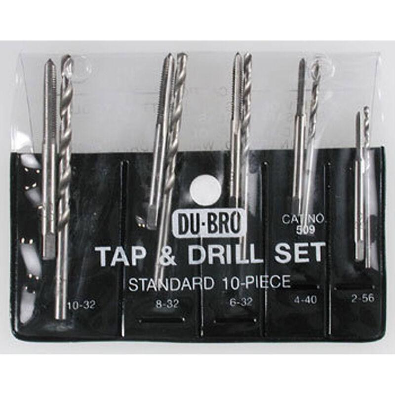 For the modeler who would like to have a complete set of taps and drills at a savings over purchasing individual sets. The five piece assortment comes complete in vinyl storage pouch. 10 piece standard tap & drill set comes complete with 2-56, 4-40, 6-32, 8-32, and 10-32 tap & drill sets. 1 complete set per package.*Tap handle not included*